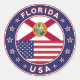 Badge of Florida with flag of Florida and American flag colors, rounded shape.