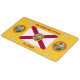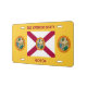 This custom license plate is decorated with the flag and seal of the state of Florida and can be customized.