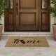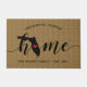 Show some home state pride with this custom doormat featuring "home" iN calligraphy script lettering with a silhouette map of the state of Florida standing in for the letter "O." A heart illustration inside the state map completes the design; you can change the position of the heart to your home city by opening the design tool and dragging the heart shape to your favorite spot. Personalize with your home city, family name and year established to create a perfect finishing touch for your front door, or a memorable housewarming gift.