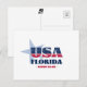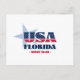 Florida postcard. A creative typography design that encapsulates Florida's essence with bold red, white, and blue colors, and patriotic elements, including stars and stripes.