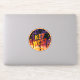 Emblem of Key West sticker with sunset and palmtrees, rounded shape.