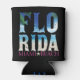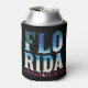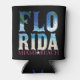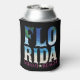 This trendy, elegant summer Can Cooler of 2023, A design that contains the word Florida, with the effect of the sea, the sun, and trees, and is characterized by the blue colors of the sea and yellow sand, and underneath it is the word Miami Beach in fuchsia