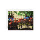 A fun collection of pink flamingos in Florida are such a perfect symbol of this sunny southern state. The image says "Greetings From Florida".