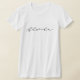 My overall review is that the T-shirt is nice, it fits true to size however the font is significantly smaller than advertised and you can't read it. The printing is unreadable and there is a strain to read it. It does not look like the advertised product. Maybe the shirt color is darker or a larger more visible font should have been used. Photos with and without flash and font is barely legible.