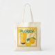 A graphic illustration of oranges and Sunshine on a Florida tote bag.