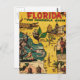Colorful and informative illustration of the state of Florida and items that are related to its history. From a vintage comic book