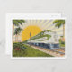 Beautiful artwork on this vintage 1941 Florida tourism postcard showing a Florida Sunbeam train on a track through palm trees with a huge sun in the background.