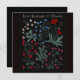 Floriography: love language of flowers from victorian age in a modern design, with sweet pea, daisy, poppy, bluebell, mistletoe on a black background. Great wildflower herbarium print art design for a bohemian interio, as a gift for valentine, for a girls room or as a funny wedding gift. In the colors sage blue red white pink and black, great botanical dark wildflowers design with handwritten messages at each flower.