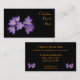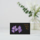 This floral business card advertising a florist shop features a bouquet of six delicate pale purple crocus blossoms with golden centers set on a pure black background. All text can be customized to fit your own personal business.