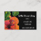 A business card design suitable for a florist or flower shop business. This card features modern simple stylish arty hibiscus tropical flower illustration design against a black customisable background. This card is fully customisable to be able to include your own details of your own business. Modern elegant art watercolor art design.
