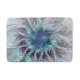 Flourish Abstract Modern Fractal Flower With Blue Bathroom Mat