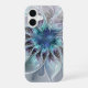 Flourish Abstract Modern Fractal Flower With Blue iPhone Case