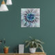 Flourish Abstract Modern Fractal Flower With Blue Poster