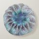 Flourish Abstract Modern Fractal Flower With Blue Round Pillow