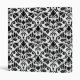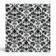 Vintage inspired damask surface pattern design in black leaf and flourish detail on a white background.