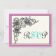 Flourish vine black pink turquoise wedding RSVP