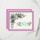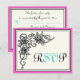 Flourish vine black pink turquoise wedding RSVP Card