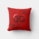Beautiful throw pillow with glossy style heart enveloped in elegant flourishes on a crimson red background