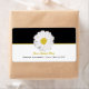 An address label featuring a background of black with yellow trim on top. Illustration of a daisy at center. Personalize with your name and address in yellow and black at bottom. Look for matching items at Jill's Paperie.