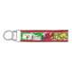 An original watercolor and ink artwork is transferred to a cheery wristlet keychain with a botanical theme with optional colors of trim