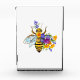 Artistically drawn, flower, honey bee with contrasting colors, yellow, bright, blooming california poppy and blue wild plants on white background.