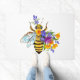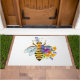 Artistically drawn, flower, honey bee with contrasting colors, yellow, bright, blooming california poppy and blue wild plants on white background.