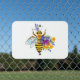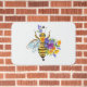 Artistically drawn, flower, honey bee with contrasting colors, yellow, bright, blooming california poppy and blue wild plants on white background.