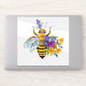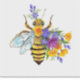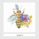 Artistically drawn, flower, honey bee with contrasting colors, yellow, bright, blooming california poppy and blue wild plants on white background.