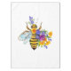 Artistically drawn, flower, honey bee with contrasting colors, yellow, bright, blooming california poppy and blue wild plants on white background.