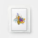 Artistically drawn, flower, honey bee with contrasting colors, yellow, bright, blooming california poppy and blue wild plants on white background.