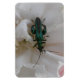 This awesome magnet features a photograph of a bluish green coloured British species of Oil Beetle sitting on a white Carnation flower. The photo was taken using macro photography to show the detail and colour of this beautiful beetle species.