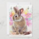An adorable bunny surrounded by flowers in watercolor. Add your own text to personalize.