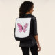 Flower arrangement of pink butterfly with pink Japanese cherry blossoms on white background.