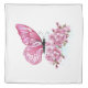 Flower arrangement of pink butterfly with pink Japanese cherry blossoms on white background.
