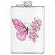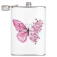 Flower arrangement of pink butterfly with pink Japanese cherry blossoms on white background.