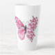 Flower arrangement of pink butterfly with pink Japanese cherry blossoms on white background.