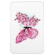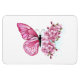 Flower arrangement of pink butterfly with pink Japanese cherry blossoms on white background.