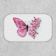 Flower arrangement of pink butterfly with pink Japanese cherry blossoms on white background.