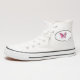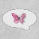 Flower arrangement of pink butterfly with pink Japanese cherry blossoms on white background.