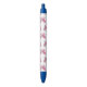 Very nice blue, or black ink pen. I will be buying more. The print was fine. I can easily see the print. The flowers look great.
