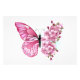 Flower arrangement of pink butterfly with pink Japanese cherry blossoms on white background.
