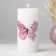 Flower arrangement of pink butterfly with pink Japanese cherry blossoms on white background.