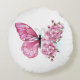 Flower arrangement of pink butterfly with pink Japanese cherry blossoms on white background.