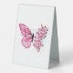 Flower arrangement of pink butterfly with pink Japanese cherry blossoms on white background.