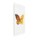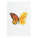 Orange, detailed monarch butterfly with wing decorated with yellow, vibrant California poppy on white background.
