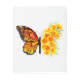 Orange, detailed monarch butterfly with wing decorated with yellow, vibrant California poppy on white background.