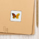 Orange, detailed monarch butterfly with wing decorated with yellow, vibrant California poppy on white background.