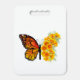 Orange, detailed monarch butterfly with wing decorated with yellow, vibrant California poppy on white background.