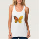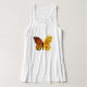 Orange, detailed monarch butterfly with wing decorated with yellow, vibrant California poppy on white background.