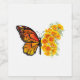 Orange, detailed monarch butterfly with wing decorated with yellow, vibrant California poppy on white background.